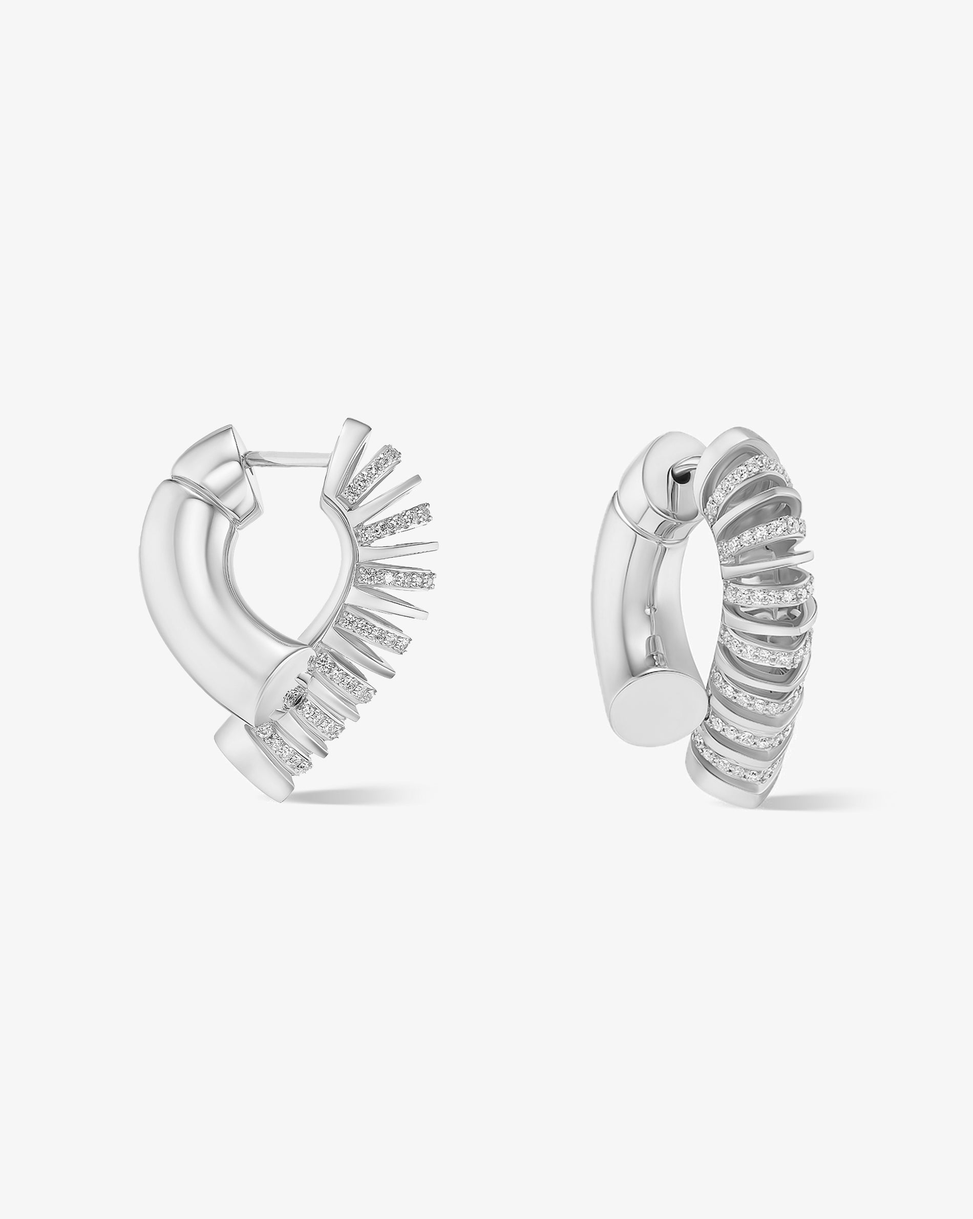White gold, paved with diamonds. Large hoop version. Pair