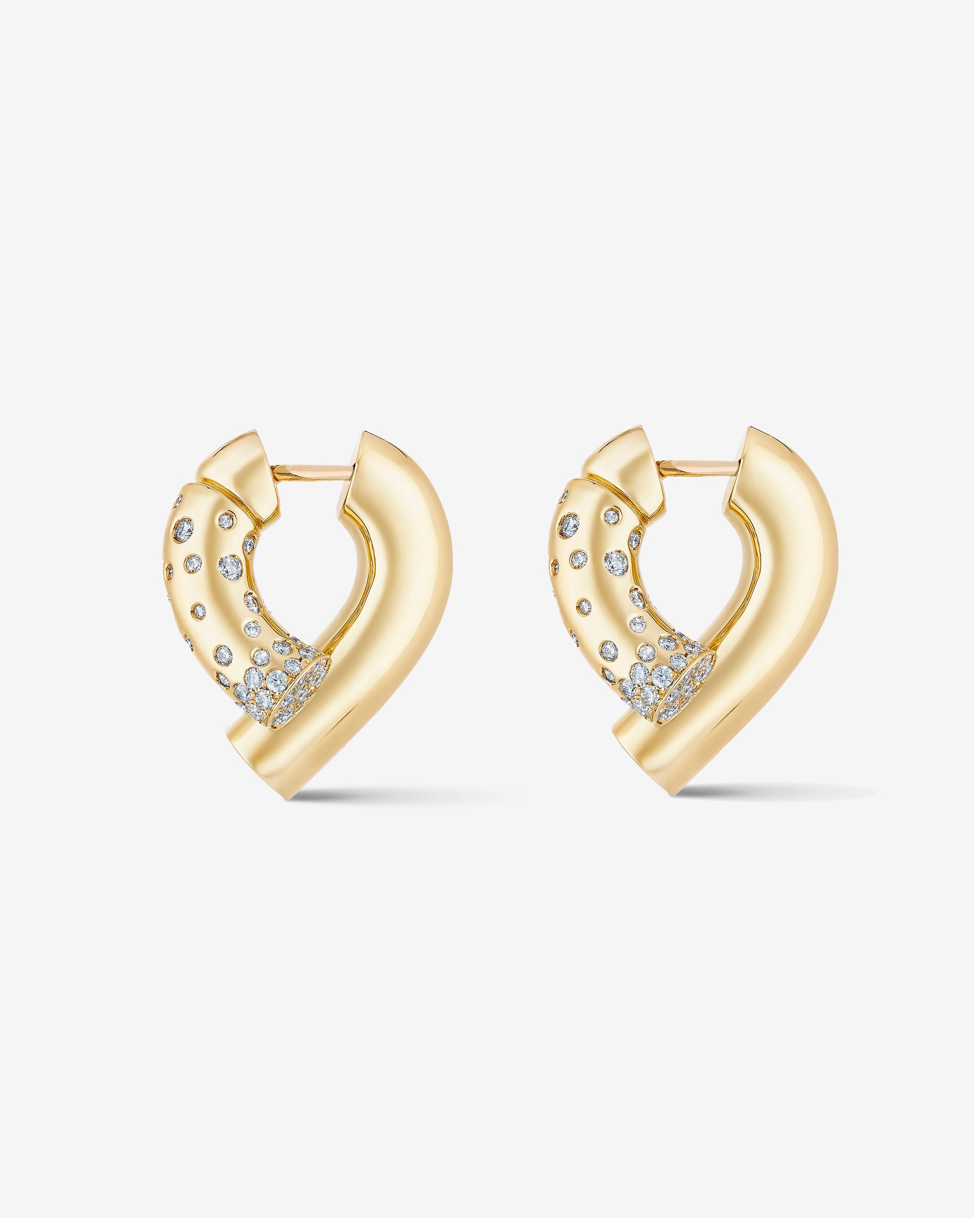 Yellow gold, paved with diamonds. Inverted version. Pair