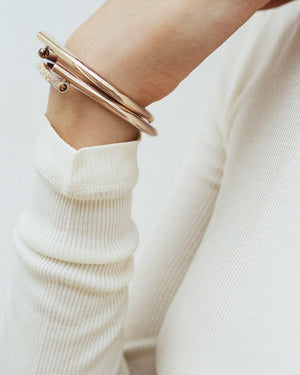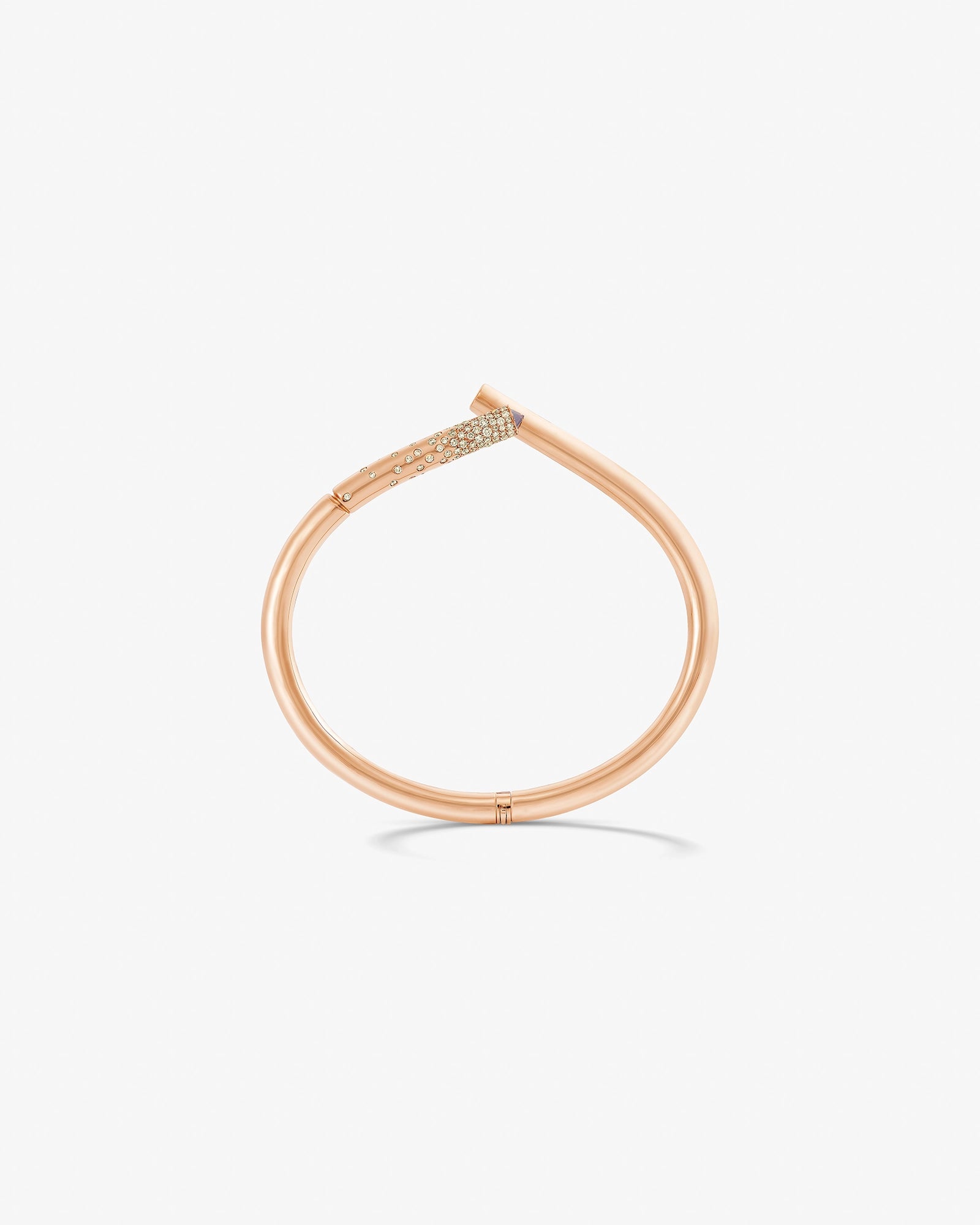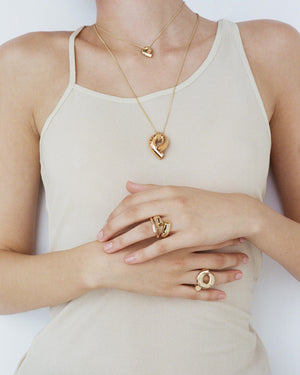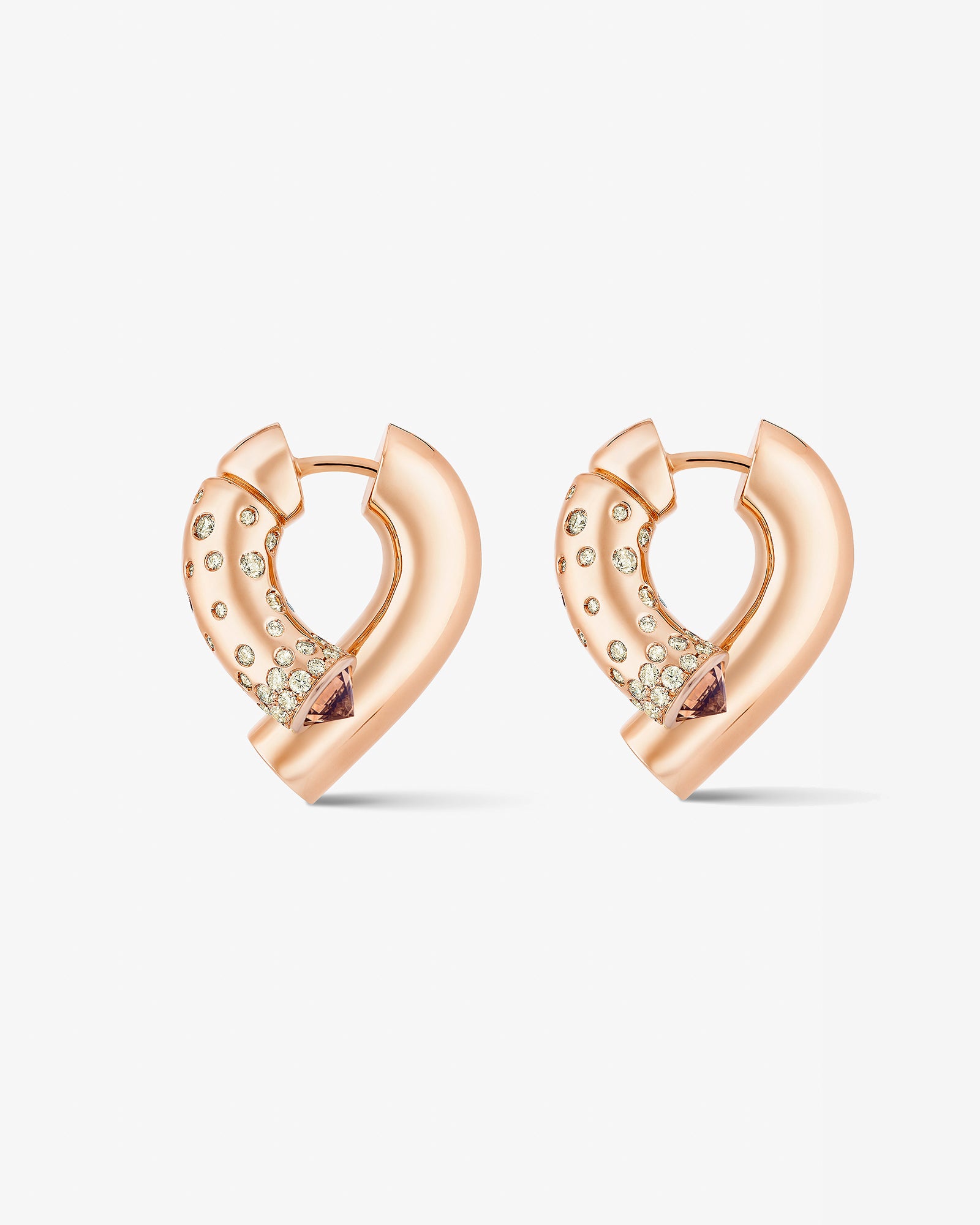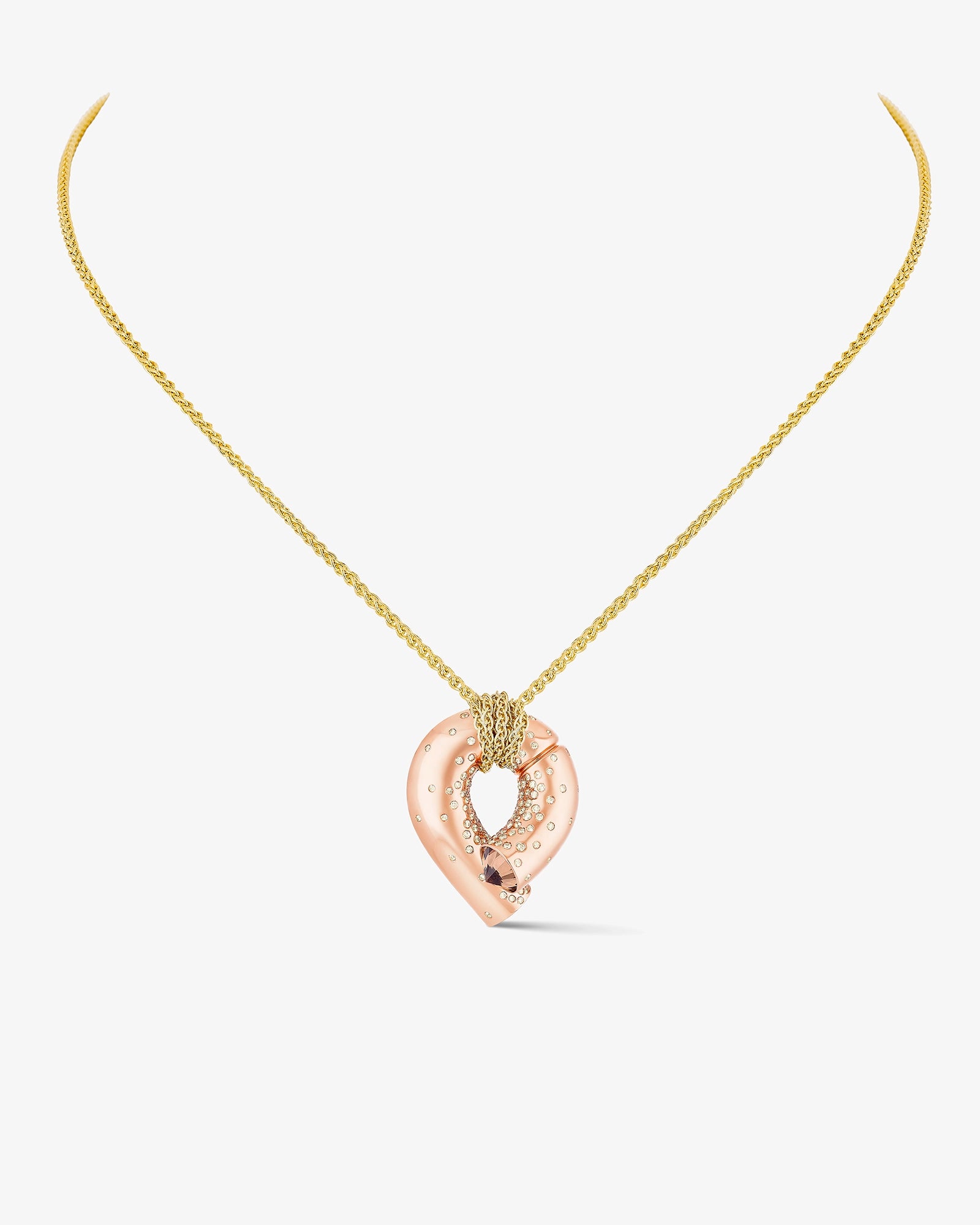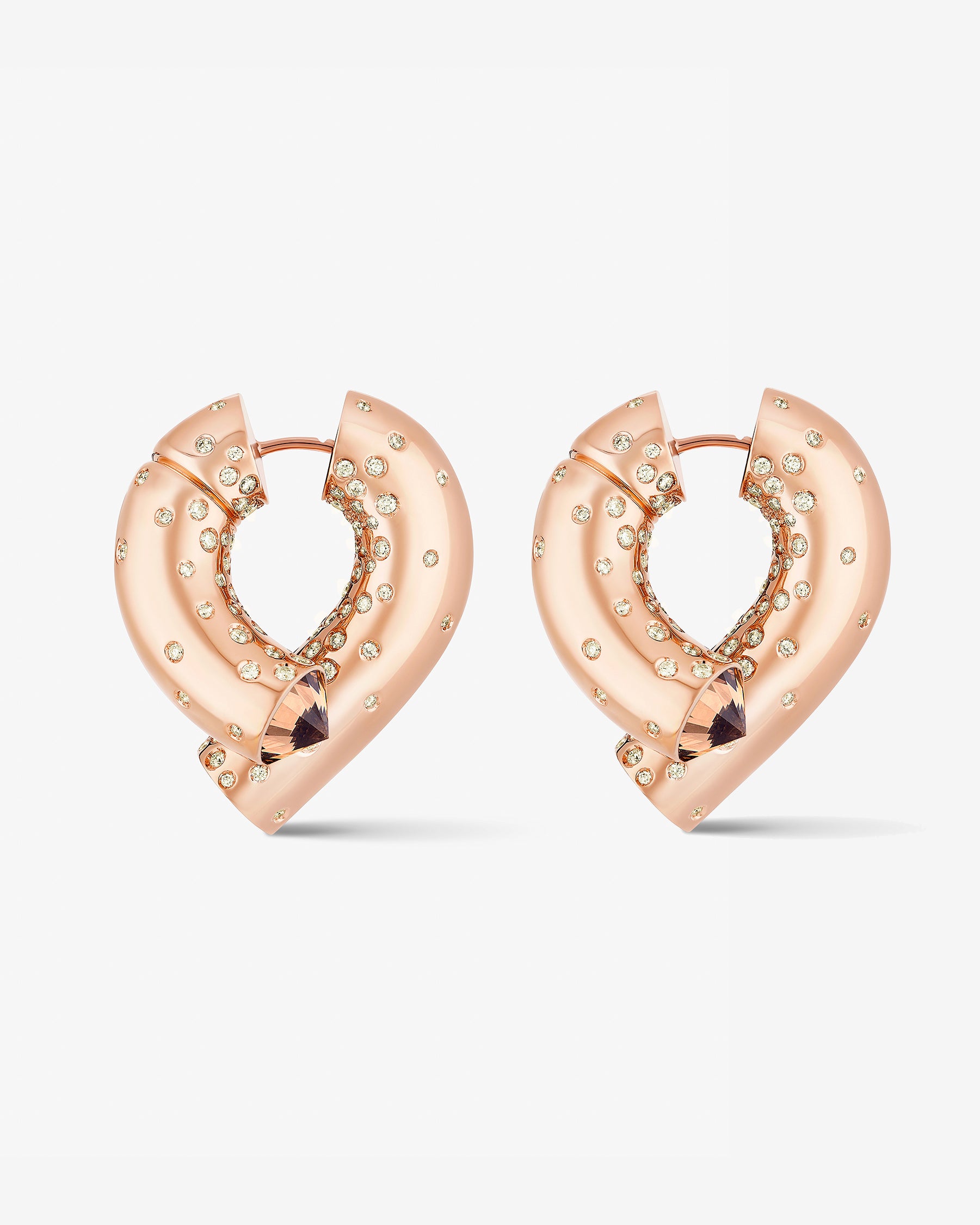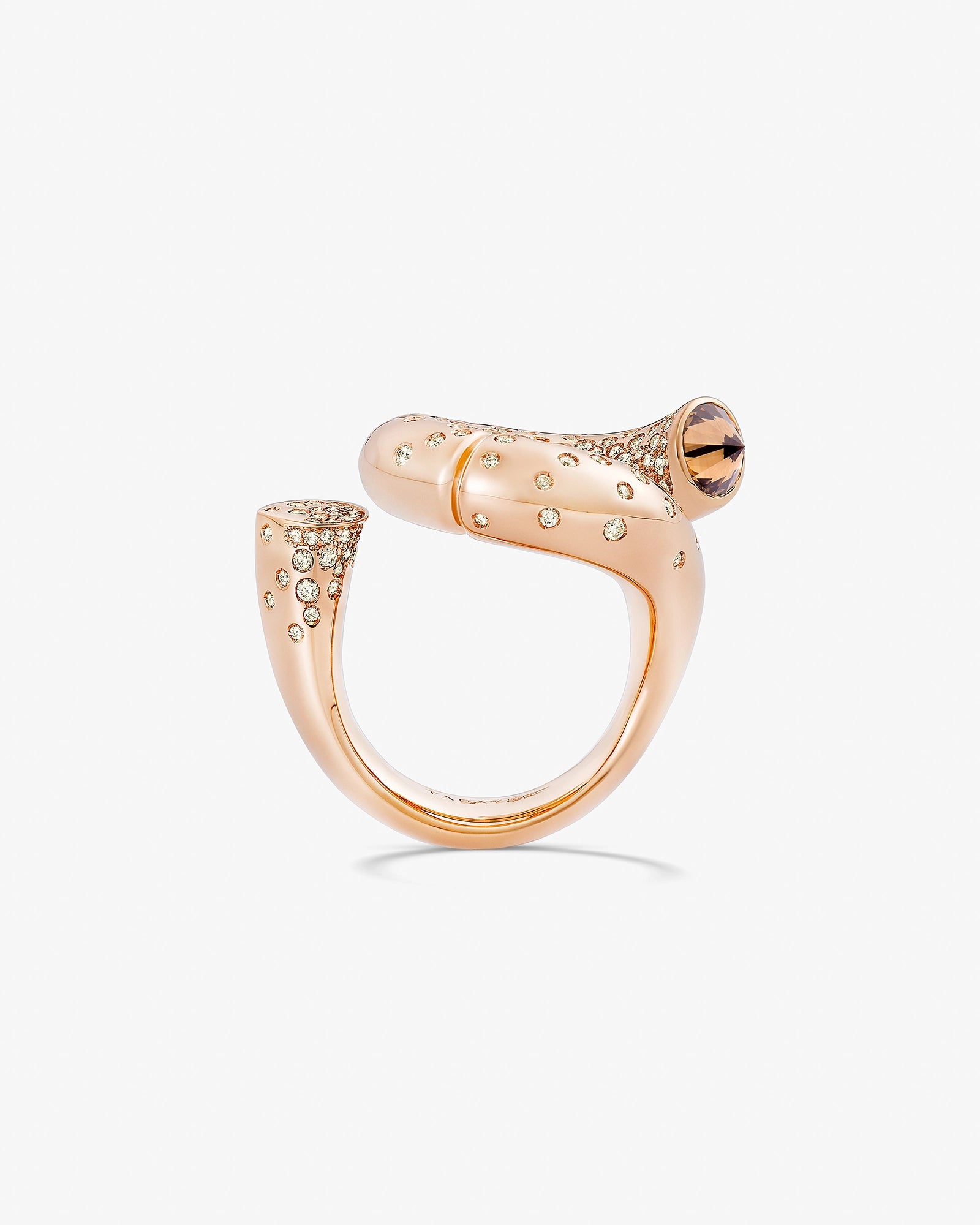 Oera Edition 02 reimagines Tabayer’s signature modern amulet in rose gold, accented with champagne and brown pavé diamonds, blending soft, sculptural forms with symbolic contrasts of strength and vulnerability.