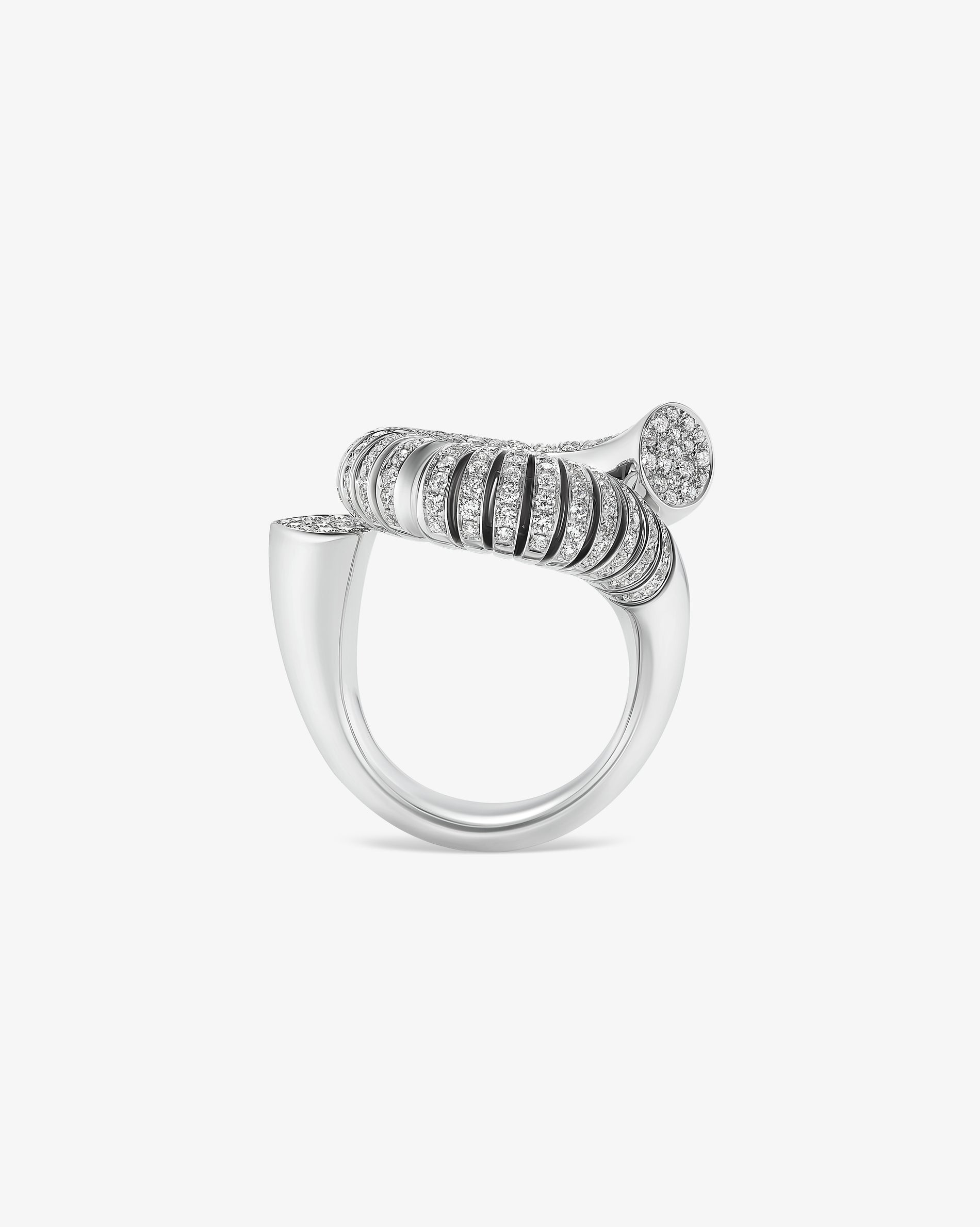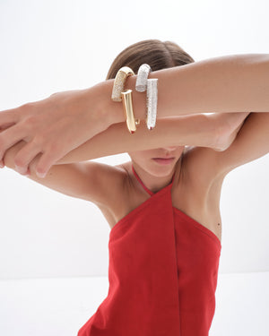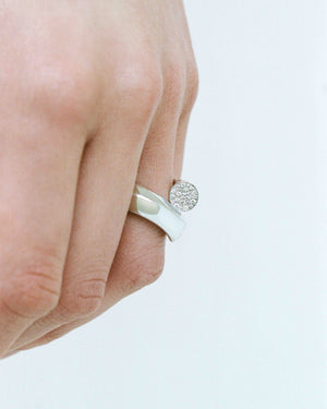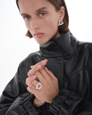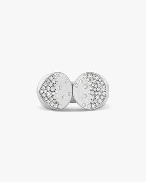 Explore the captivating world of white Fairmined gold and the luminescent beauty of diamond-adorned pieces. The clarity of white gold and the scattering of diamonds set the stage for Inanna's knot motif design—Oera's interpretation of the universal talisman, transcending purity and beauty.