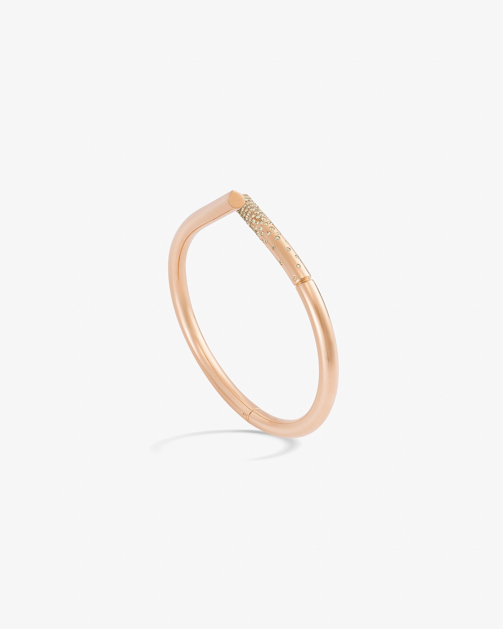 Fine gold forms a nexus and a knot that comes to touch in a smattering of diamonds.