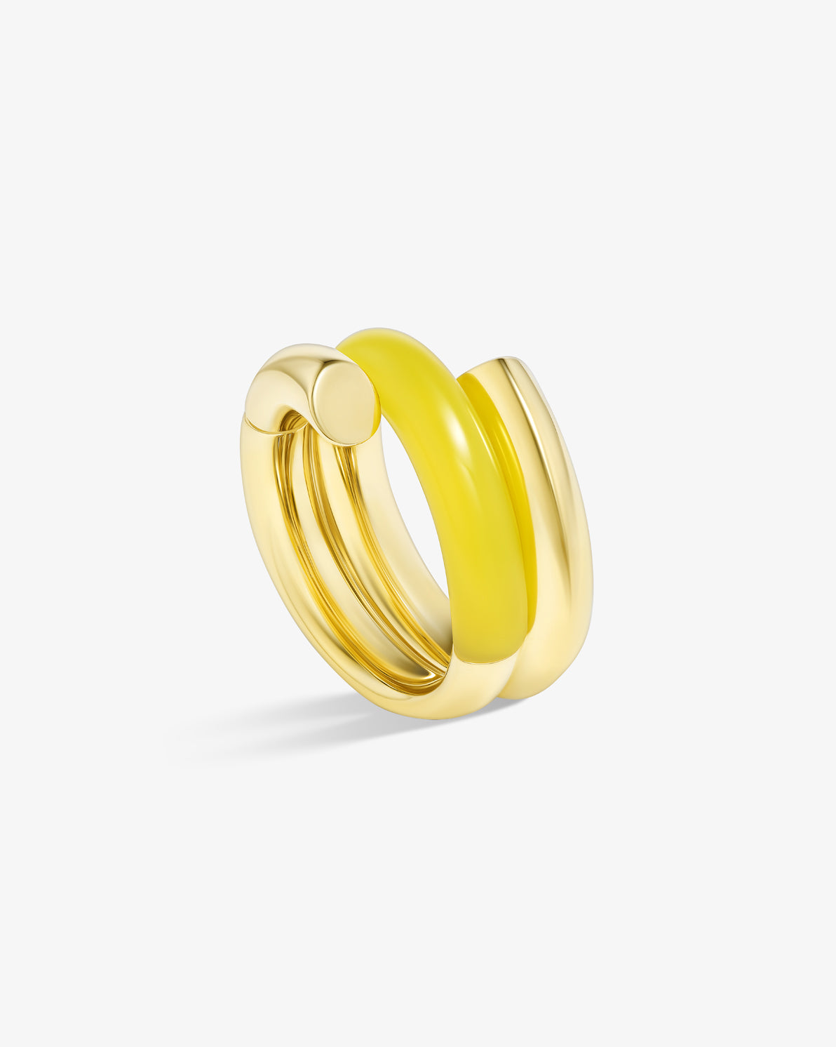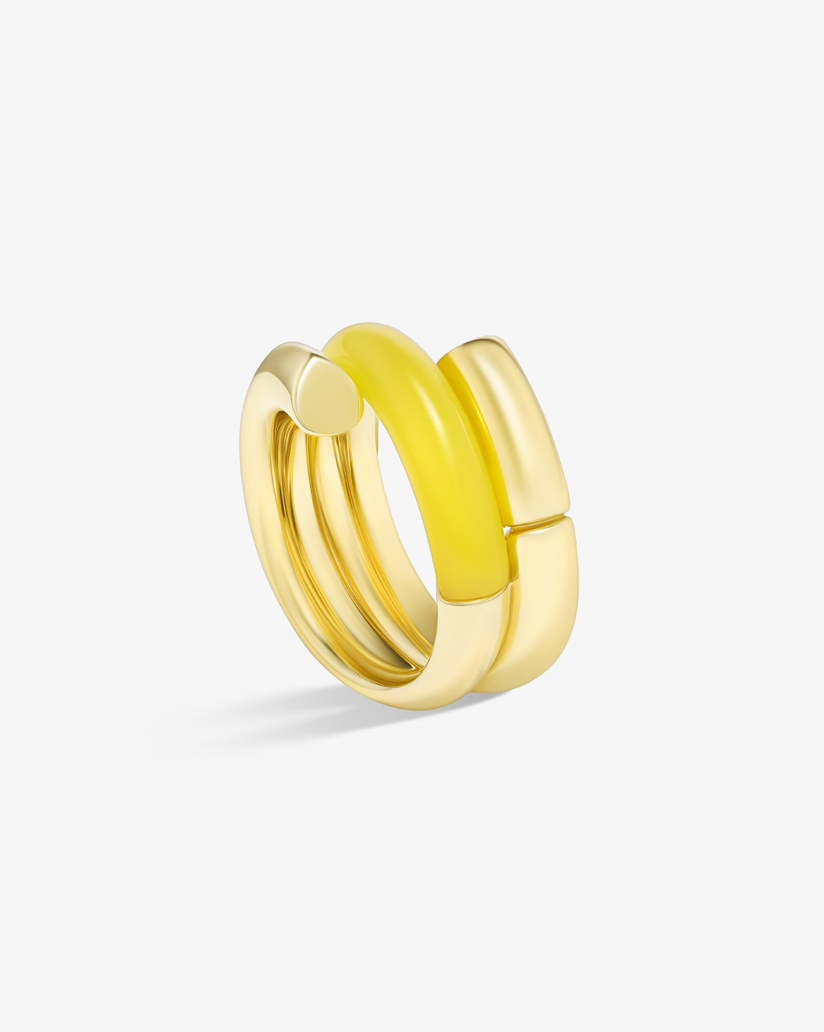 Oera Ring a coil version that delicately combines 18k yellow gold with carved yellow agate