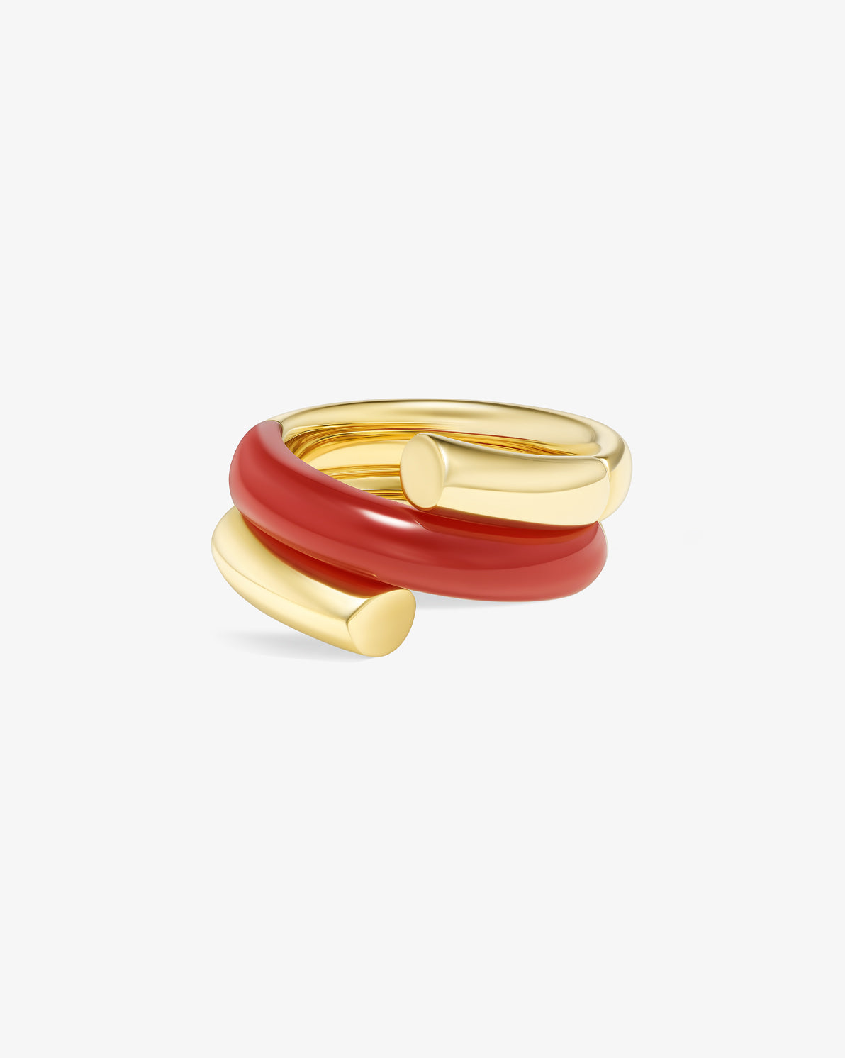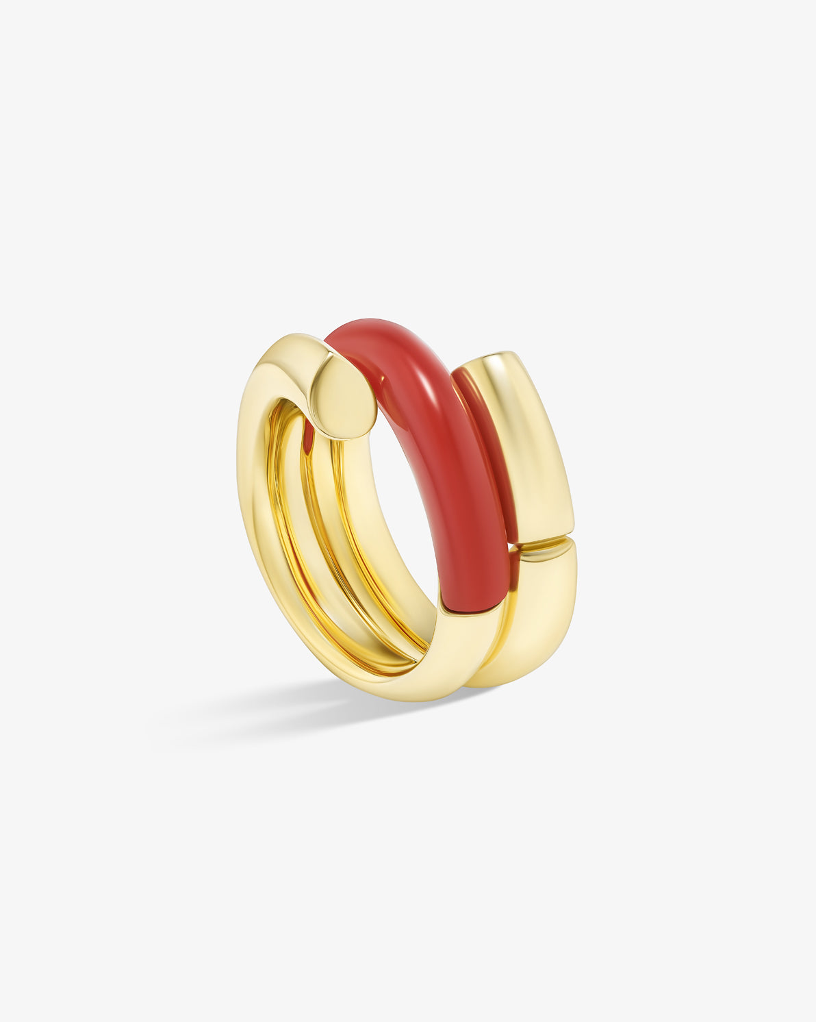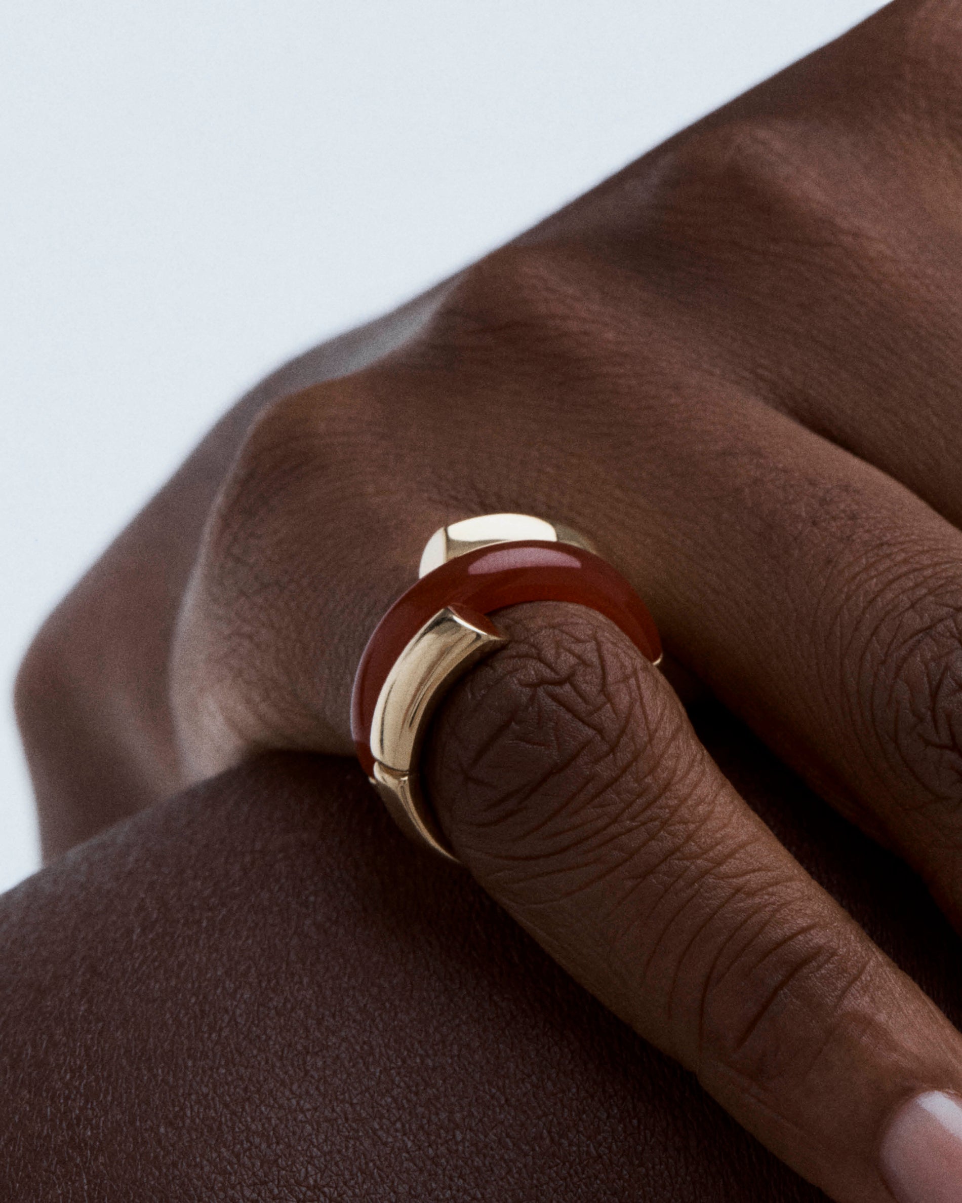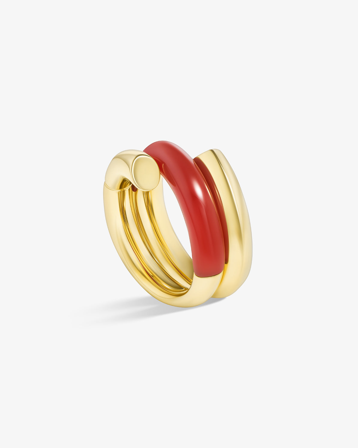 Oera Ring a coil version that delicately combines 18k yellow gold with carved carnelian