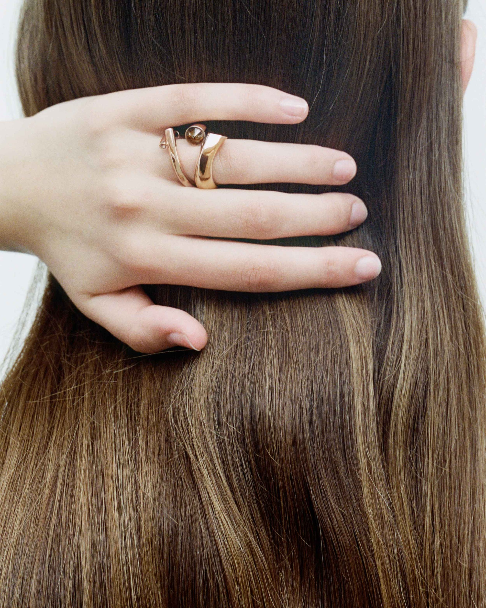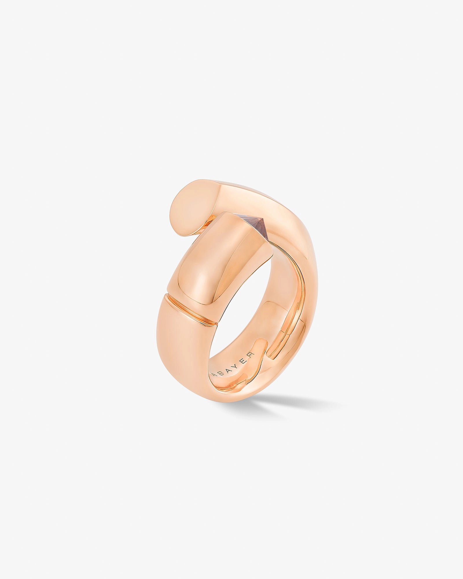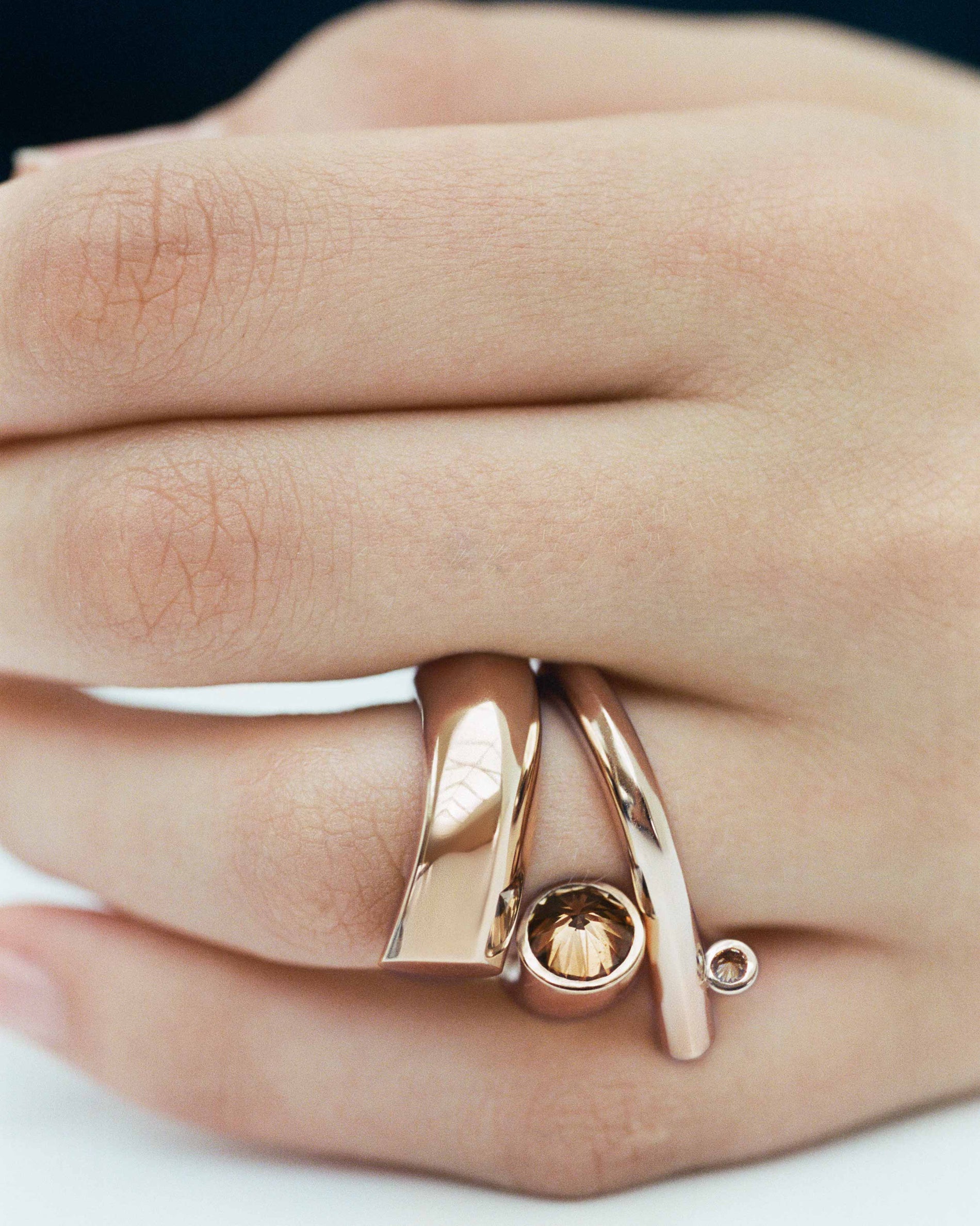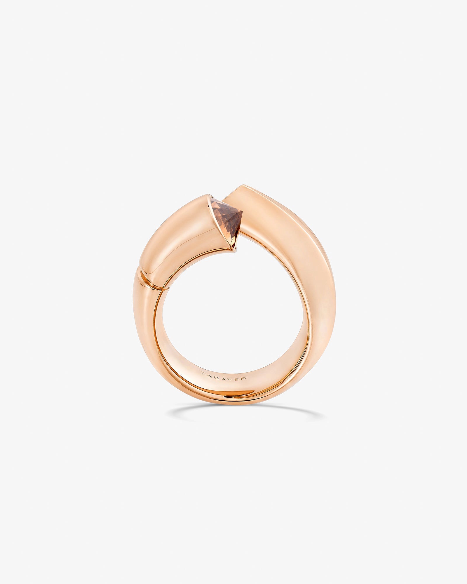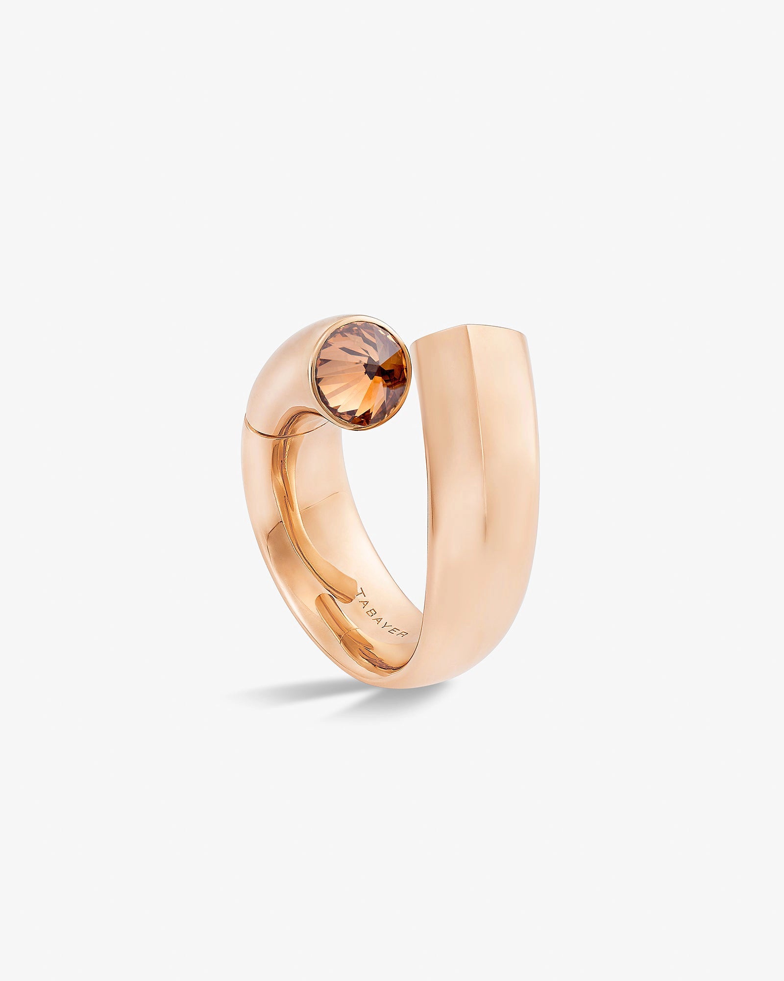 The bold tendency of this voluminous rose gold statement ring is elicited in a single round diamond.