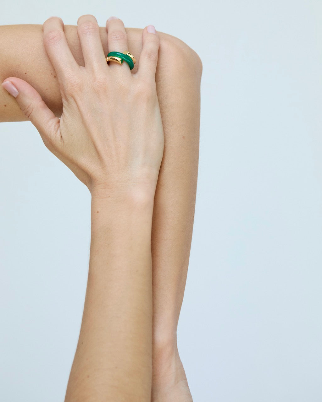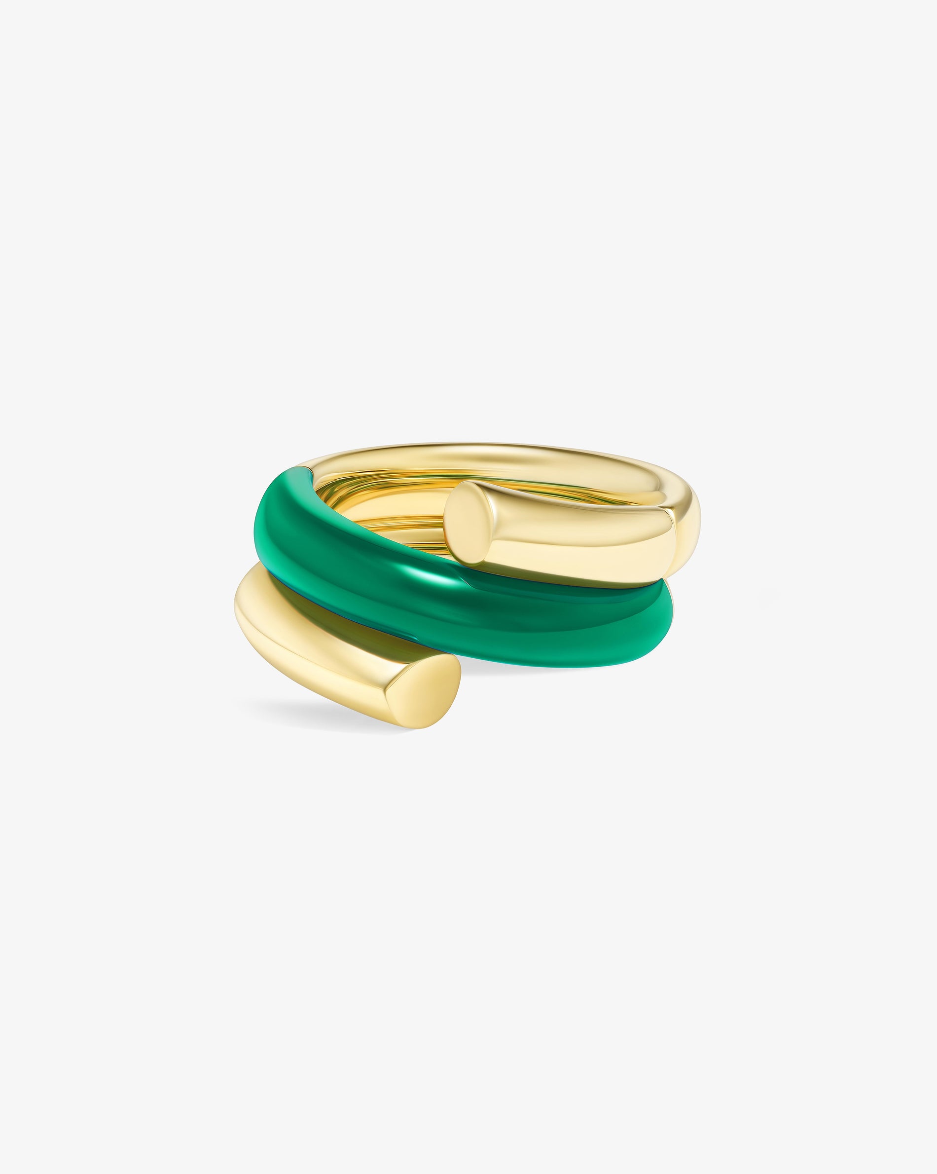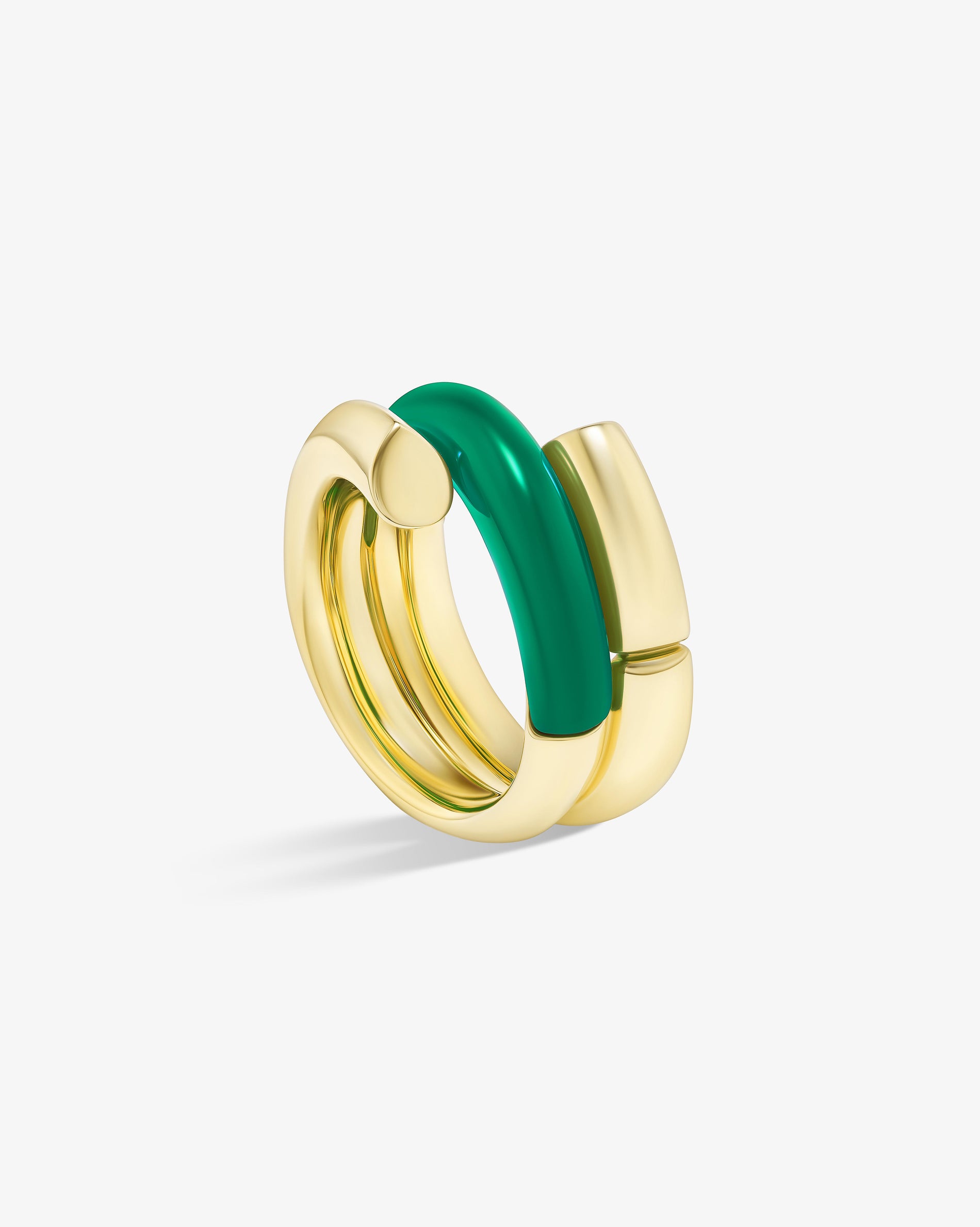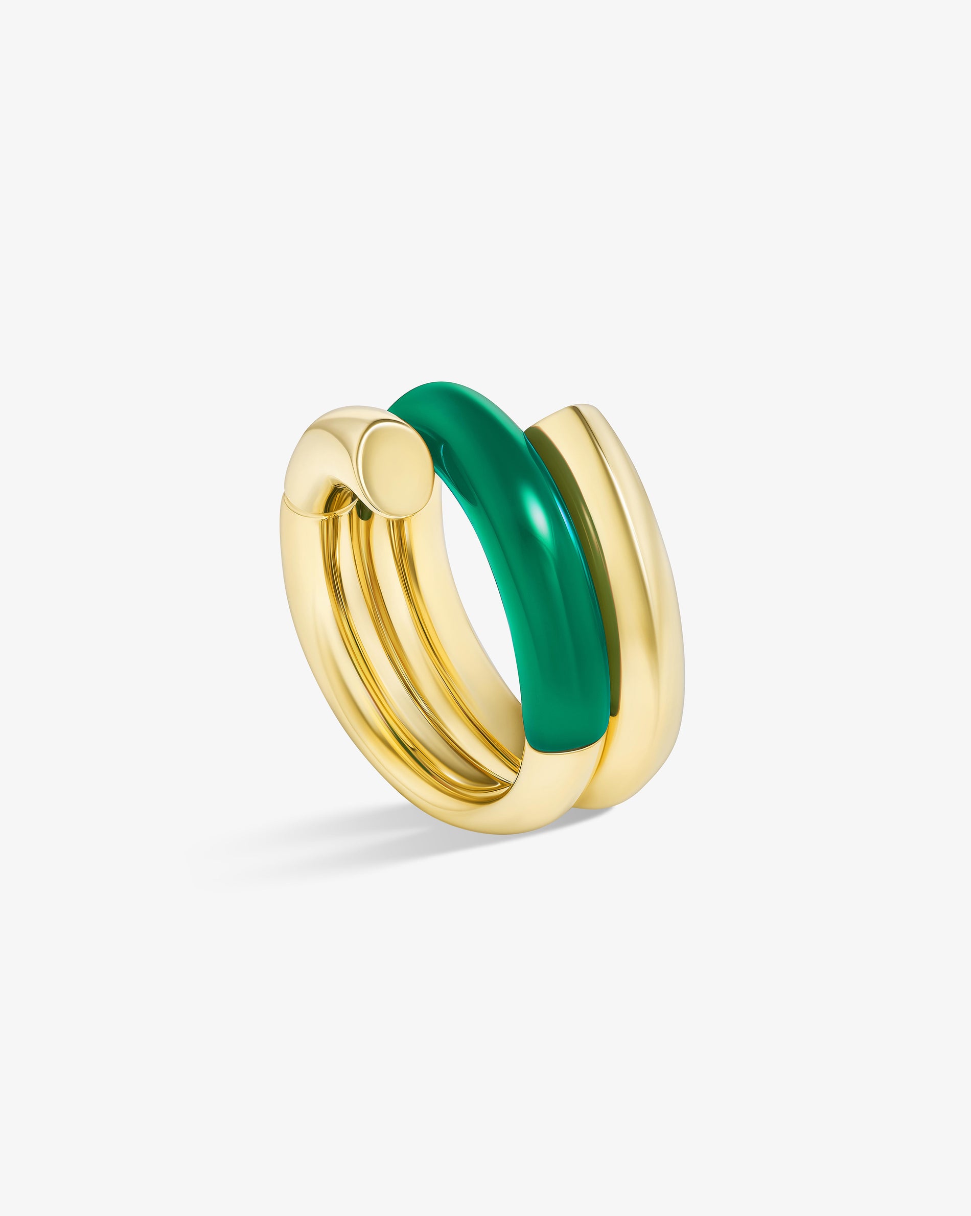 Oera Ring a coil version that delicately combines 18k yellow gold with carved green agate
