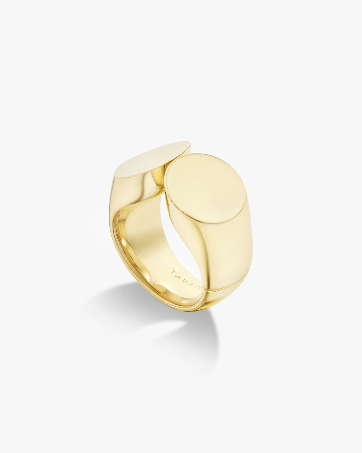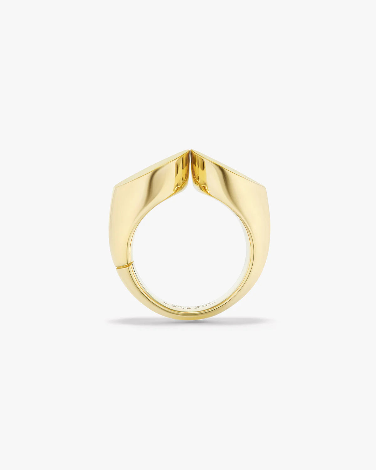 Two asymmetric blunted ends meet in a gender-fluid reimagining of statement ring
