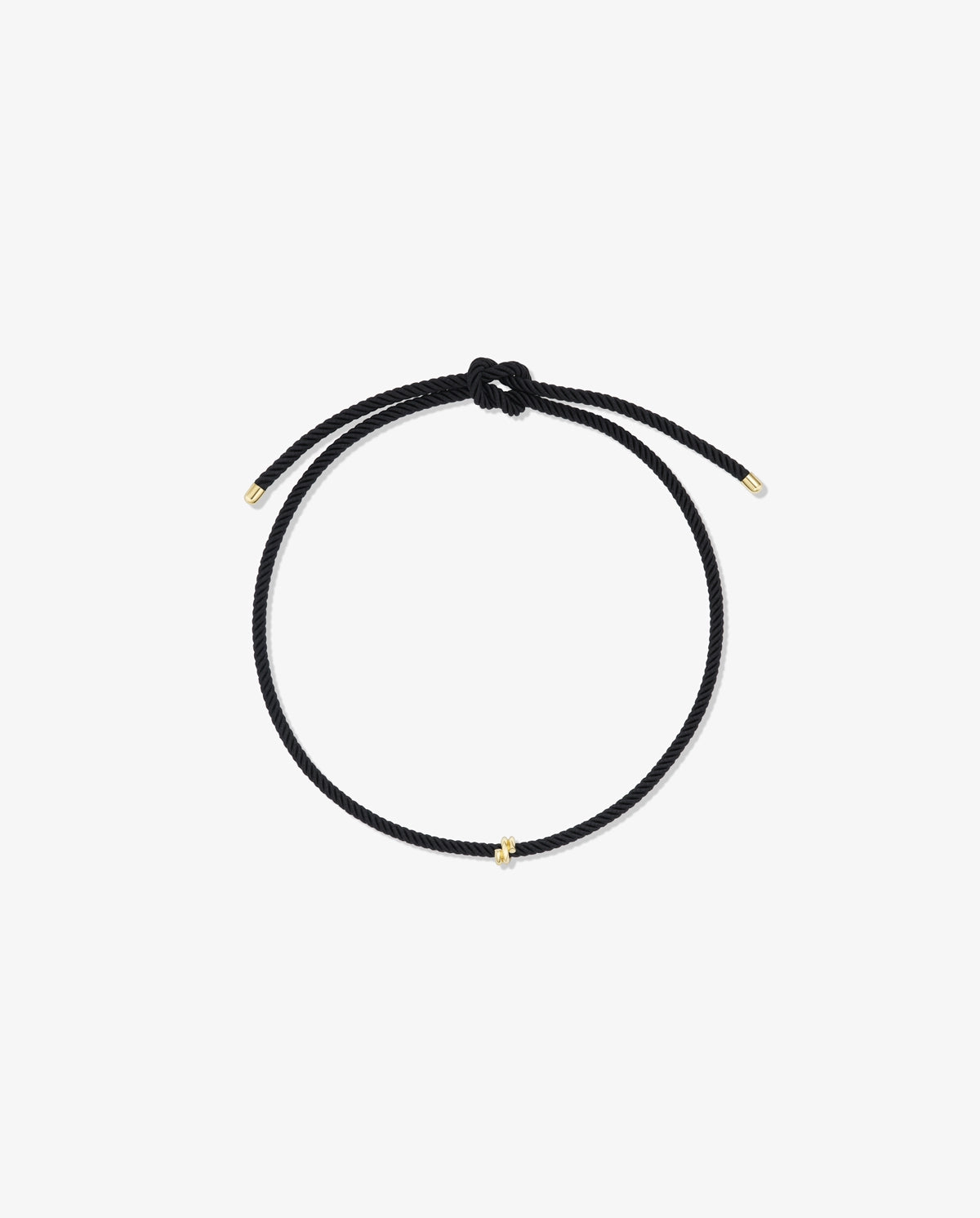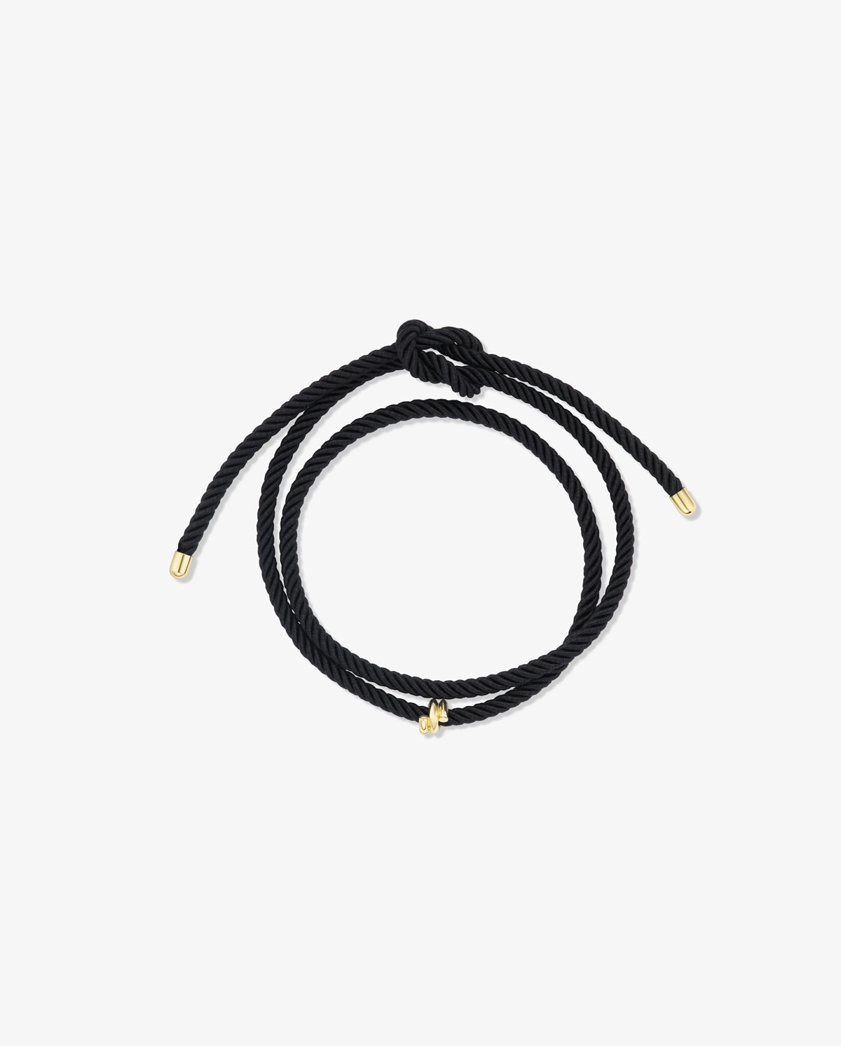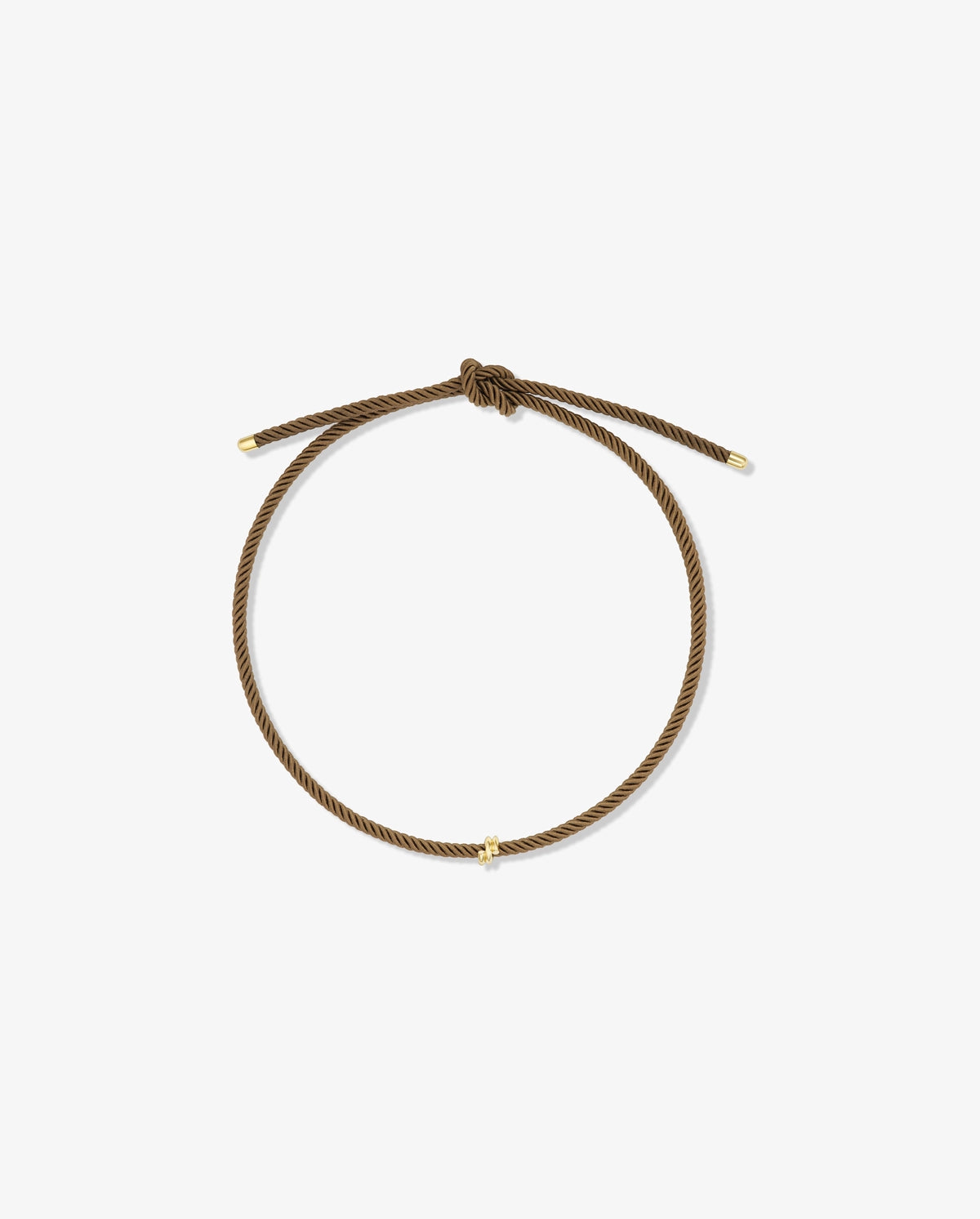 A yellow gold bead on a silk cord protects its wearer wrapped around a wrist or a neck.