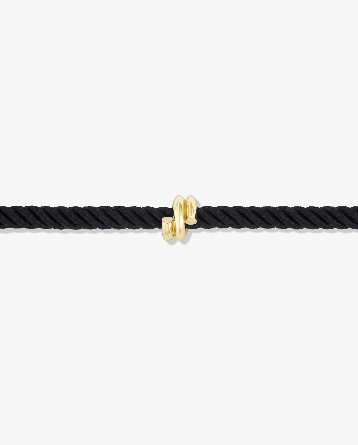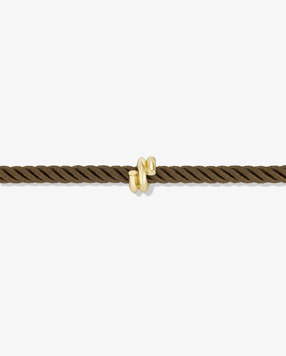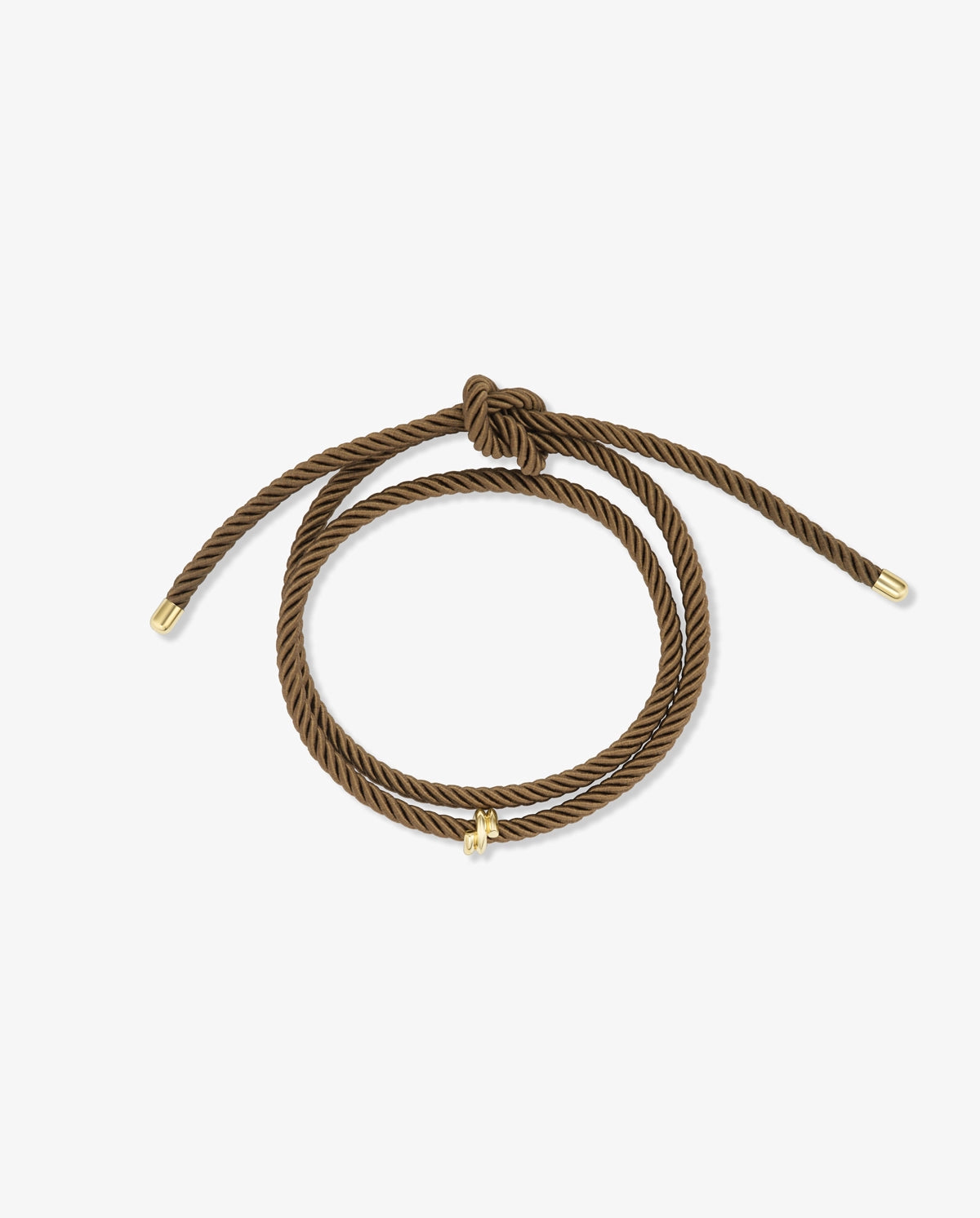 A yellow gold bead on a silk cord protects its wearer wrapped around a wrist or a neck.