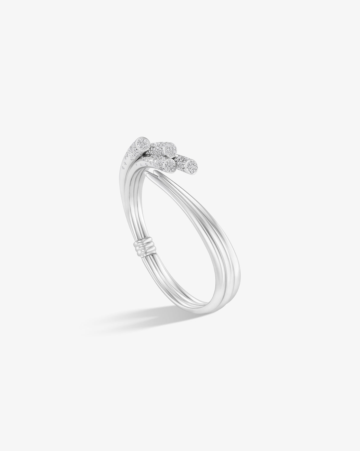 An architectural form drawn from nature, 18k white gold sheafs gathered and wrapped together, their surfaces shimmering with pavé diamonds.